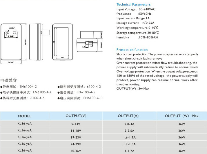 36W插墻式電源適配器