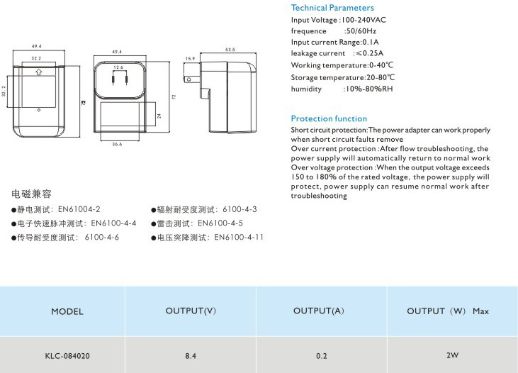 短路保護: 電源適配器在短路解除時(shí)能正常工作恢復